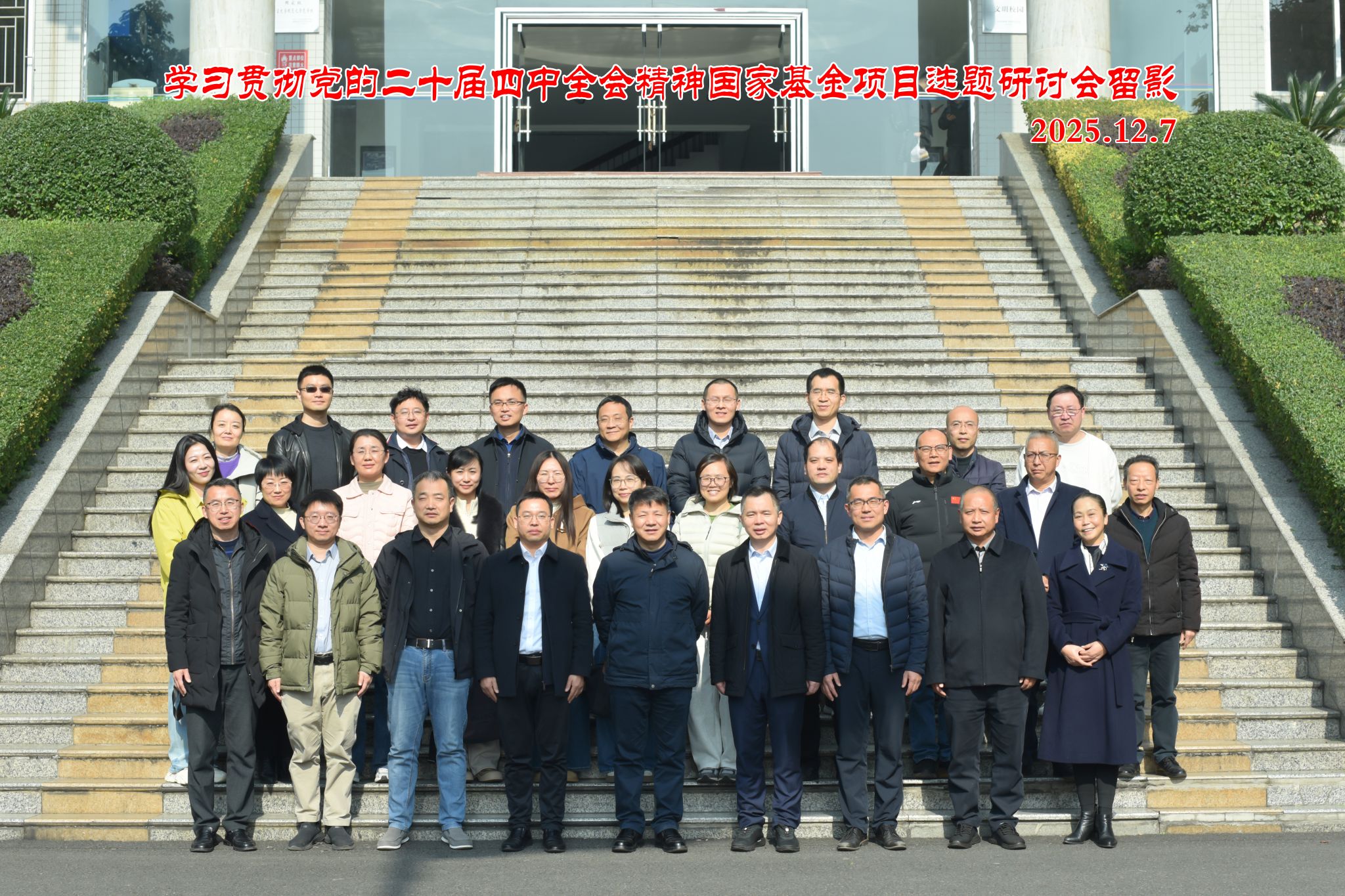 本网讯(文图/院新闻传媒中心)12月5日至7日,由乐山师范学院经济管理学院、中国发展经济学西部实验研究基地、武汉大学西迁历史文化保护研究中心联合主办的“学习贯彻党的二十届四中全会精神暨国家基金项目选题研讨会”在我校顺利召开。来自武汉大学、中南财经政法大学、新疆财经大学、西南财经大学、西南石油大学、江西财经大学等高校专家学者,以及来自《当代财经》、《华中农业大学学报(社会科学版)》和《农村金融研究》资深编辑齐聚嘉州,深入学习党的二十届四中全会精神,围绕全会通过的“十五五”规划建议,经济社会发展各项工作的纲领性文件,结合国家基金项目申报展开深入研讨。