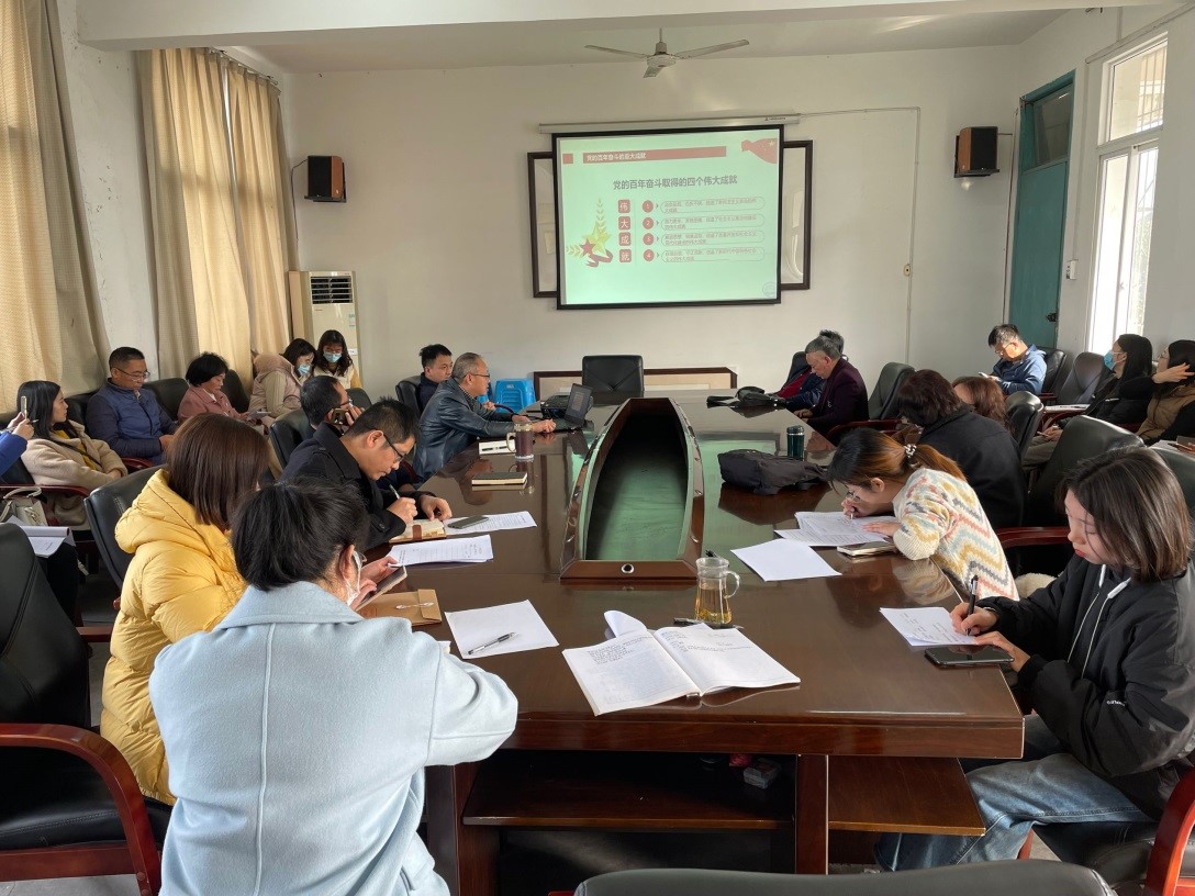 讲座过程中,程书记向大家介绍十九届六中全会会议概况,解释党的百年奋斗取得的四个伟大成就,接着,程书记从坚持马克思主义中国化、坚持人民至上等四个方面总结党的百年奋斗的历史经验,重申要加强党的自身建设、自我革命的重要性。