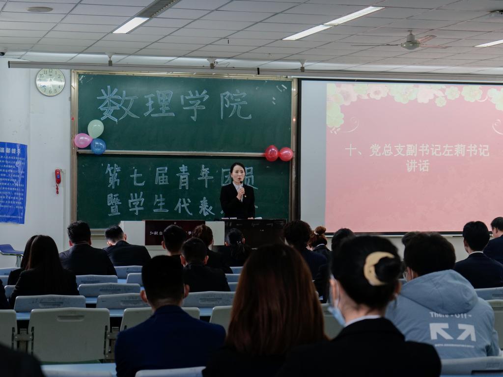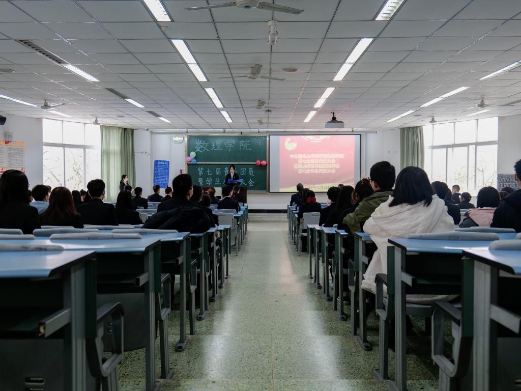 本网讯(文、图/邓利娟、杜巍)11月19日下午,共青团乐山师范学院数理学院第七届代表大会暨第七次学生代表大会在行知楼114教室召开。学院党总支书记余德刚、党总支副书记左莉、学生科长陈盈舟、辅导员曹琳、廖宇、江纳以及各年级学生代表参加了此次大会。本次大会由传媒中心主任麻雪琳同学主持。
