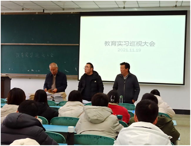 本网讯(图、文/王兴会)近日,学校教育实习巡视组关北光教授、毛加宁教授、刘猛老师对旅游学院教育实习工作展开第二轮检查,教育实习巡视大会在行知楼225教室召开,会议由旅游学院实习带队教师郑柳青主持。