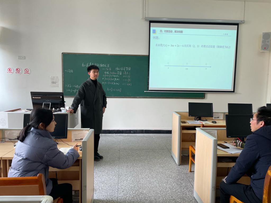 数理学院王炳霖(省级参赛选手)对所讲课题反复研磨,多角度剖析教学片段,精益求精。