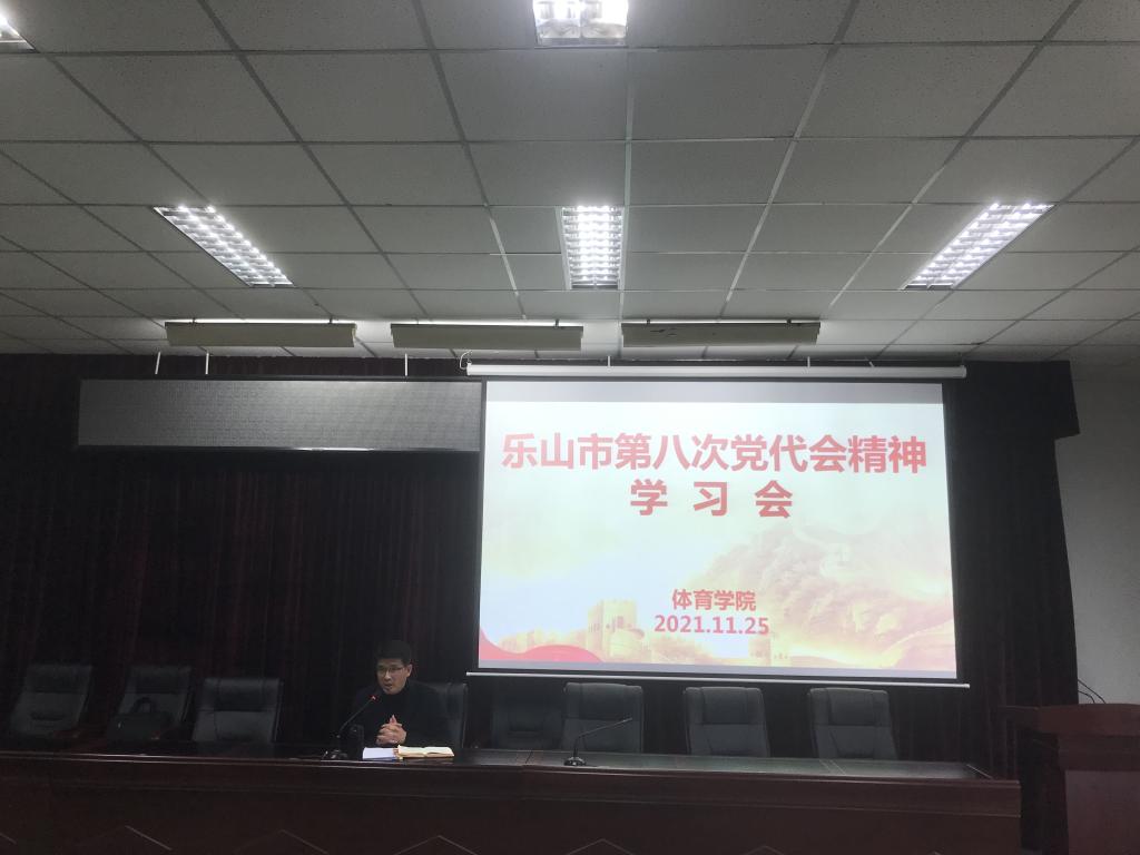 本网讯(文、图/熊仪)为深入学习贯彻党的十九届六中全会精神、乐山市第八次党代会精神,11月25日下午,体育学院组织全体教师在弘毅楼412教室进行专题学习,会议由院长张峰主持。