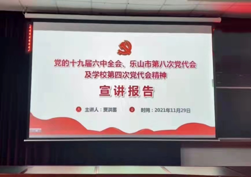 学习会上,贾洪鉴围绕党的十九届六中全会精神,分别从党的十九届六中全会概况、全会公报内容解读、认真学习贯彻起精神等方面出发,着重讲解了一个历史定位、三次理论飞跃、四个历史时期与伟大成就、百年奋斗的五大历史意义、十条宝贵经验等内容的深刻内涵。接着,他介绍了乐山市第八次党代会的主题、任务以及乐山市未来发展五年的“345”工作思路,并作了深入的分析。最后他带领大家对学校第四次党代会精神进行了学习,从深刻领会第四次党代会的主题、过去五年取得的建设成就和办学经验、学校面临的发展形势和机遇、“三步走”发展战略安排、“1329”发展战略内涵要义、加强党的全面领导的总体要求、今后五年学校纪委工作总体思路等七个方面进行了讲解。