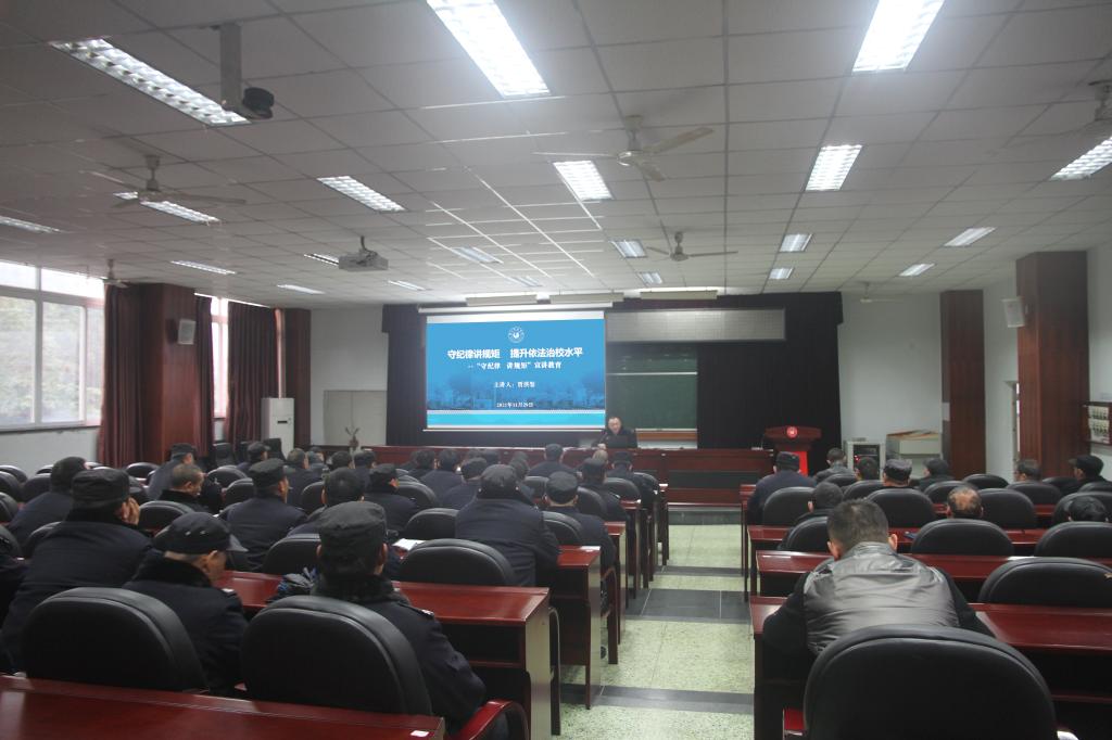 本网讯(文/何甜 图/薛小丽)11月29日下午,党委武装保卫部在学校弘毅楼413教室开展“守纪律讲规矩、提升依法治校水平”专题教育学习会,部门全体党员干部及教职员工参加了学习,会议由党委武装保卫部部长贾洪鉴主持。