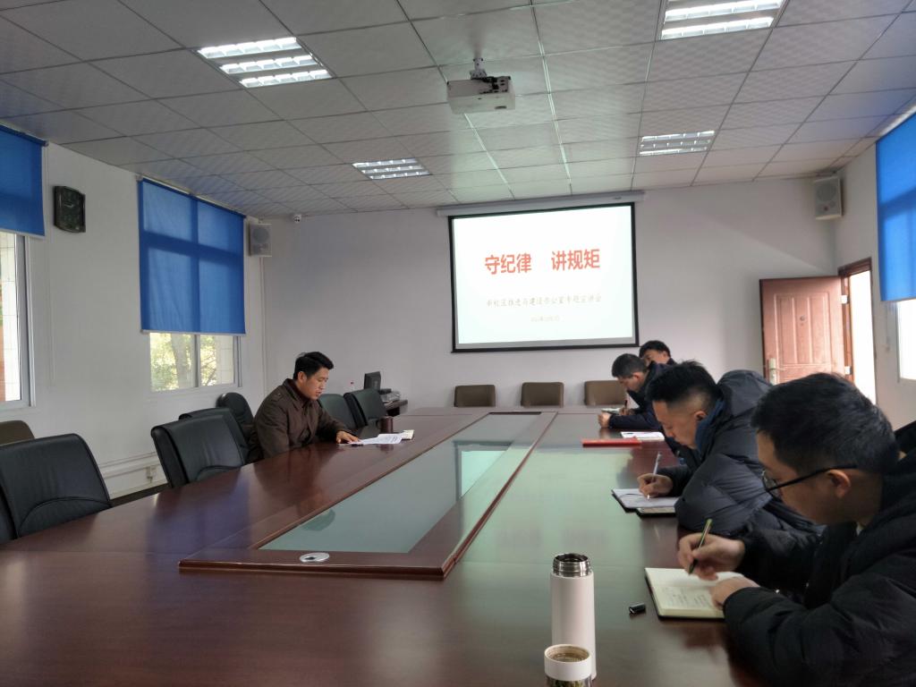 本网讯(文、图/ 杨耀)12月1日上午,新校区推进与建设办公室在梅庄四楼会议室召开“守纪律 讲规矩”专题宣讲会。推建办党支部书记、主任宋天华主持会议并作主题宣讲。
