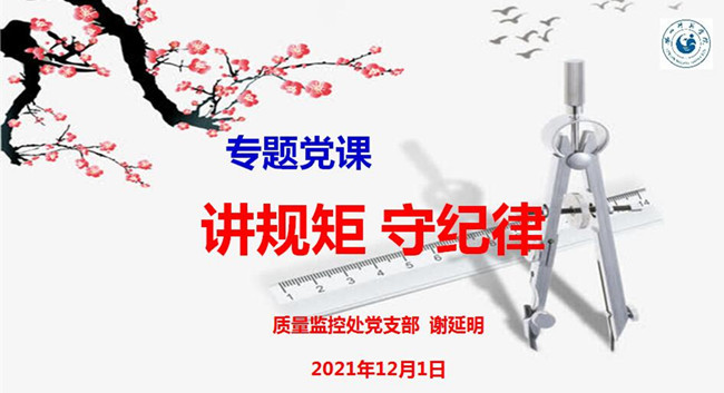本网讯(文/夏红 图/邓敏)12月1日下午,质量监控处党支部组织全体党员在弘毅楼502室组织开展“守纪律、讲规矩”专题党课活动。党课由支部书记谢延明主讲。