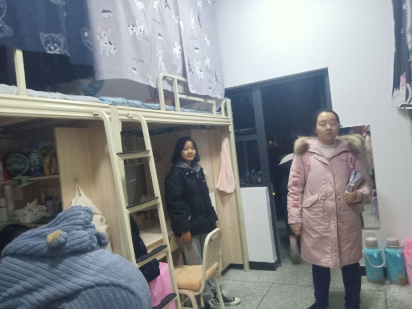 检查中,刚刚结束不久的寝室美化大赛使各个寝室看起来温馨和谐,但同学们的安全隐患意识稍显不足,私拉乱接电线的现象也屡有发生,有的同学甚至把插线板、充电器放在床上,在老师和学生干部、学生党员的悉心教育下,同学们认识到自己的做法所带来的安全隐患并立刻整改。在卫生方面,大部份寢室都能做到保持寝室卫生的干净整洁。走访过程中,随处都能听到老师的耐心叮咛和安全提示。老师们还询问了大四学生的毕业安排,鼓励他们抓紧时间,积极备考。