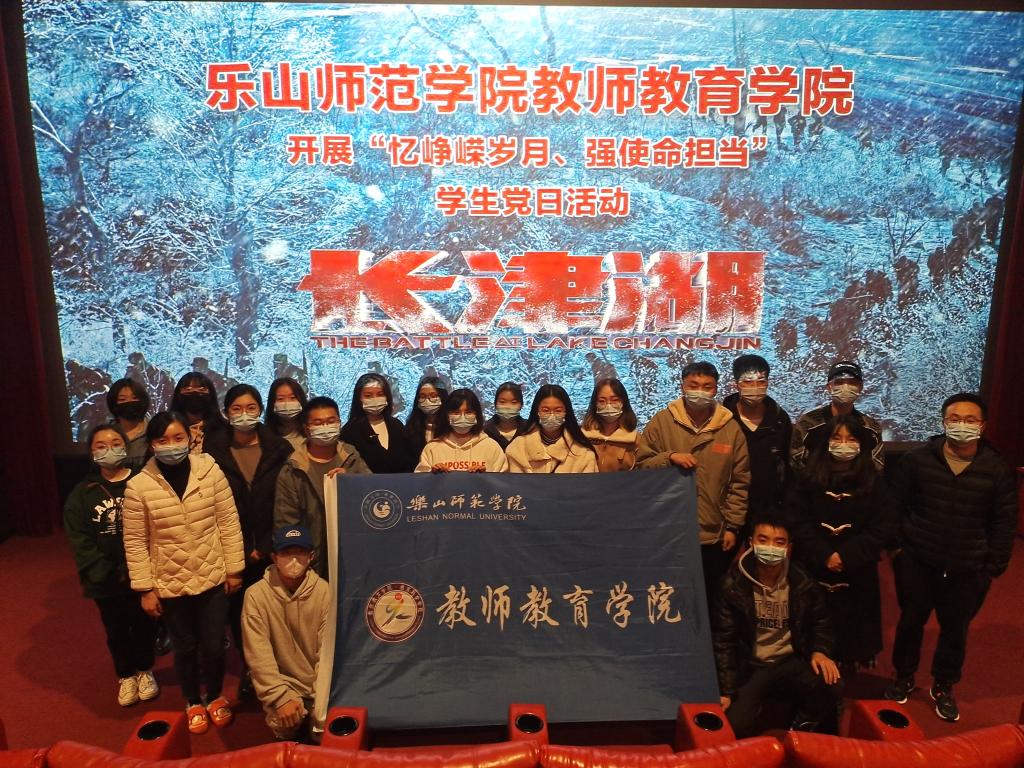 本网讯(文、图/张靖)为创新党史学习形式,激发党员们的爱国热情,教师教育学院于12月5日下午6:30组织部分学生党员代表在蓝山湾UME电影院开展了“忆峥嵘岁月,强使命担当”主题观影活动,集中观看电影《长津湖》。