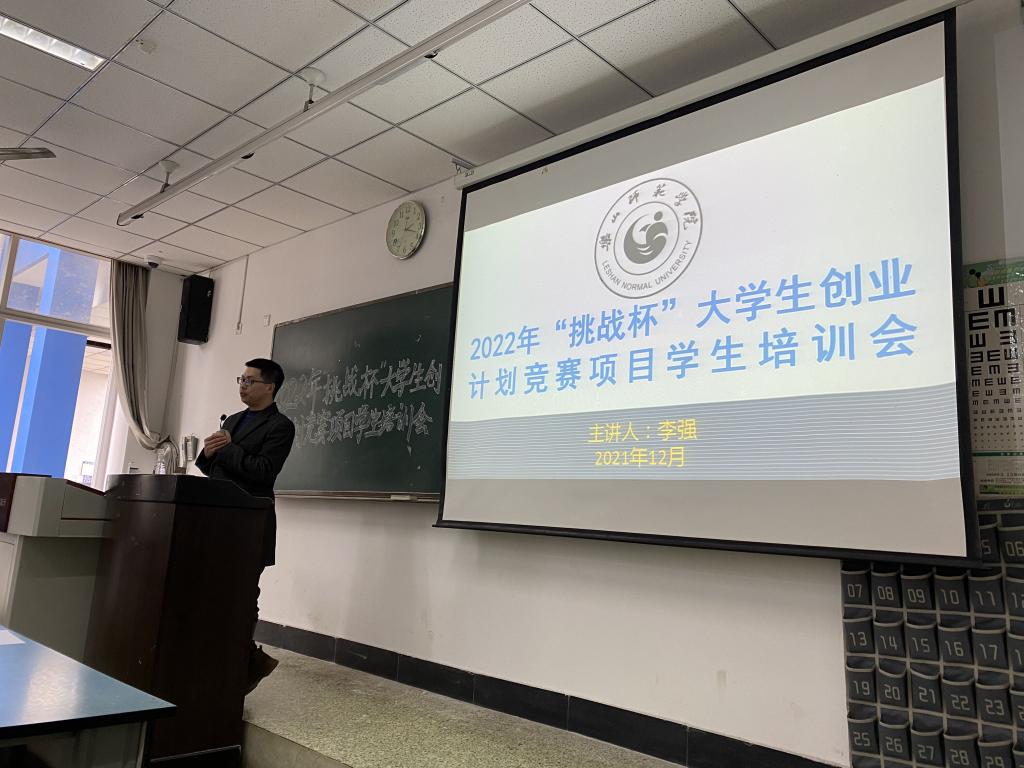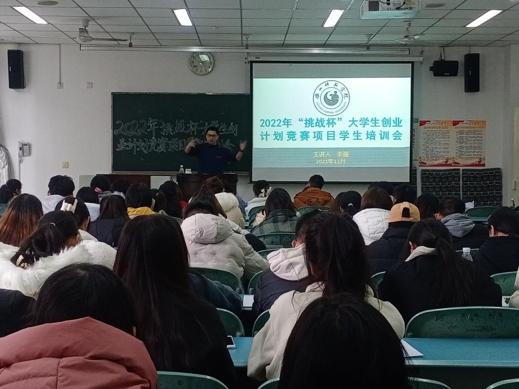 本网讯(文/王子睿 图/杨蓓蓓、杨越越)2021年12月9日下午,为进一步做好2022年“挑战杯”中国大学生创业计划竞赛的备赛工作、提升团队质量与立项项目整体水平,我校团委特邀四川师范大学创新创业中心主任李强,于行知楼213教室举行相关专题讲座培训。校内选拔赛中立项的32个项目组成员参加本次培训。