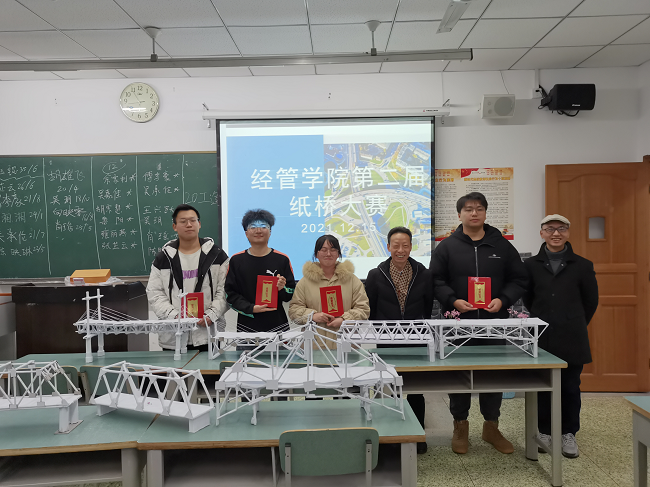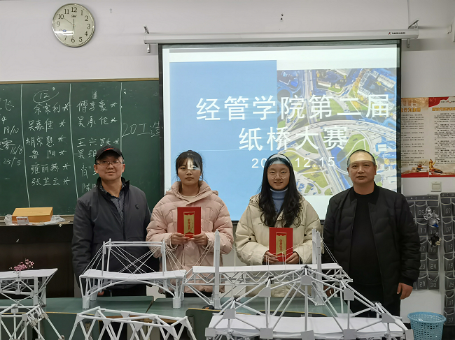本网讯(文/刘佳怡、图/刘延伟)12月15日下午,经管学院于行知楼开展第二届纸桥竞赛,经管学院副院长杨小川、罗富民、实验室主任王付军、专任老师邢帆、陈松、熊毅、2020级辅导员代青茹等参加了本次竞赛。竞赛采用投票制,以D等级为最高等级。