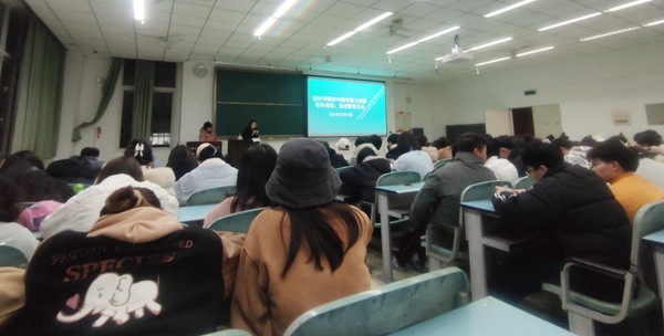 辅导员钟蕾首先就疫苗接种、助学金发放、考风考纪、假期安排等方面进行了说明,强调大三是学生成长发展的关键时期,希望19级的同学能珍惜这个长寒假,在此期间提升专业技能、做好未来规划,防患于未然。随后副书记彭瑾也向19级学生表示了亲切的问候,就创新创业比赛、学分学时、学生考研考公等方面做了详细的解释,希望我们19级的学生能抓住机会、努力奋斗,无悔青春。