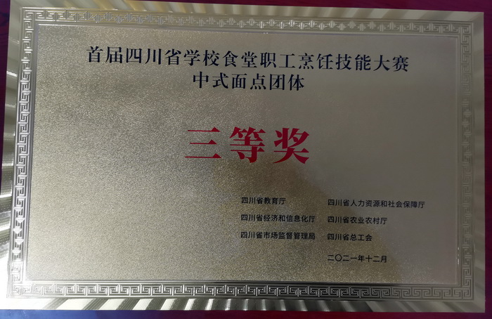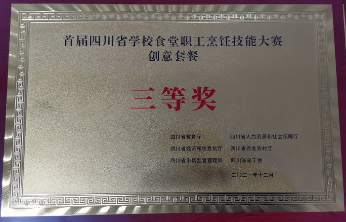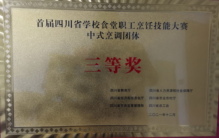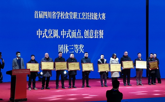 本次比赛由四川省教育厅、四川省人力资源和社会保障厅、四川省经济和信息化厅、四川省农业农村厅、四川省市场监督管理局、四川省总工会主办,四川旅游学院承办,全省65所高校和技师学院共计372名学生食堂职工参赛,分别评出中式烹调、中式面点、创意套餐团体一、二、三等奖和优秀奖以及中式烹调、中式面点个人奖。我校参赛队荣获中式烹调团体三等奖、中式面点团体三等奖和创意套餐三等奖。