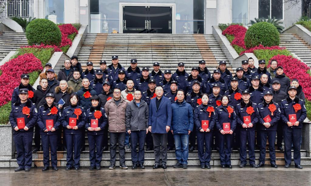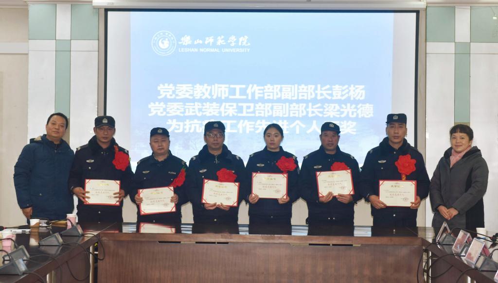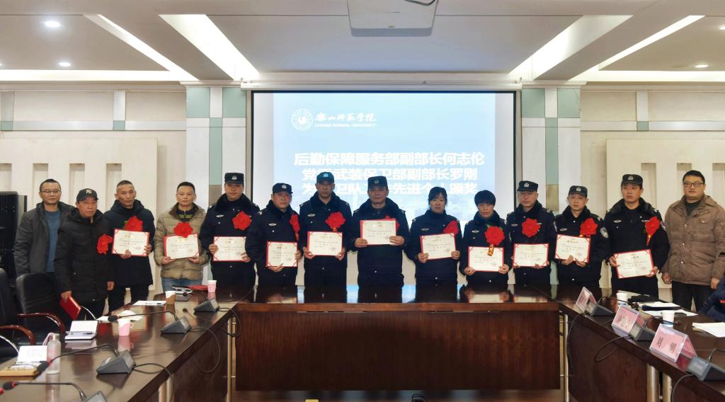 总结表彰会上,彭杨宣读《四川省高等教育学会高校保卫学专业委员会关于表彰2021年度四川省高校“平安校园”建设先进个人的决定》及2021年度年度保卫处表彰校卫队“优秀队员”与“抗疫先进个人”的决定。随后,彭杨、梁光德为吴婷、王成虎等6名抗疫先进颁发荣誉证书;何志伦、罗刚为胡勇刚、蔡慧群等12名校卫队优秀队员颁发证书;贾洪鉴为“省优秀保安先进个人”的沈会蓉、王晓林颁发了荣誉证书。