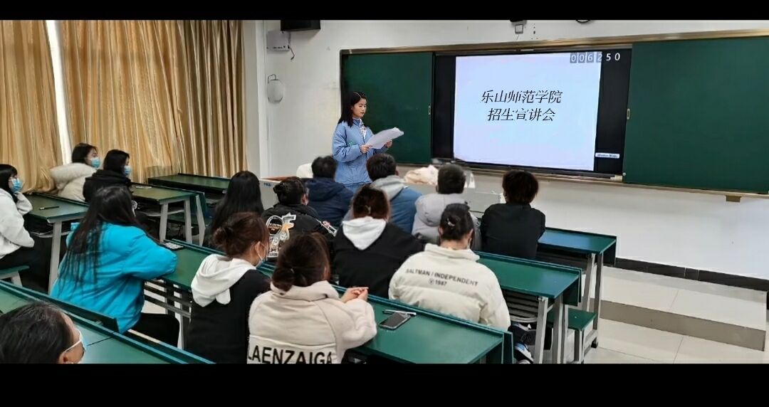在古蔺县蔺阳中学,入党积极分子刁思敏、李婷婷、闫一芳,团员青年彭坤玉四名同学面向该校的高三学子介绍了乐山师范学院整体情况,各个专业的历年录取分数,选拔到武汉大学交流学习的情况。高三学子们对我校的“武大交换生”项目产生了浓厚的兴趣。同时刁思敏等同学也分享了自己在乐师的学习经验和收获成长。