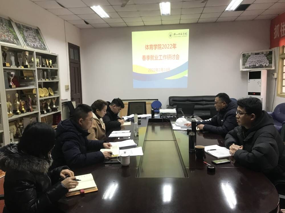本网讯(文/关光富、图/熊仪)2月24日上午,体育学院在学院会议室召开2022年春季就业工作研讨会,学院院长张峰、党总支副书记(主持工作)钟大勇,以及学院班子其他成员、学生科长、毕业班辅导员参加会议。