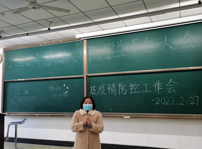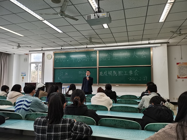 本网讯(文/陈涛、图/邹尖)为组织全院学生干部做好新学期各项工作,常态化做好疫情防控,2月27日,旅游学院在行知楼101教室召开了学生干部会议。会议由学院学生管理科科长江纳主持,21级辅导员喻剑以及分团委、学生分会、青年传媒中心全体学生干部参加了会议。