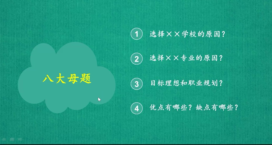 其次,关玲香讲解了怎样进行自我介绍,以及怎样回答最容易问到的八大母题。强调面试的重点是“低调得有腔调,真实得有技巧”,考生在备考过程中结合自己的实际情况,将八大母题想透彻、想清楚,做好充分的准备。