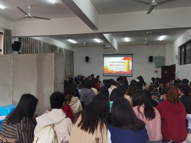 本网讯(文、图/何源)3月8日,马克思主义学院在实训楼B104室召开国防教育暨征兵工作动员会议。学委党委武装保卫部副部长梁光德,征兵工作负责人徐凌云,马克思主义学院党总支副书记钟永淑,辅员张红丽、何源出席会议,2022届全体毕业生参加。会议由何源主持。