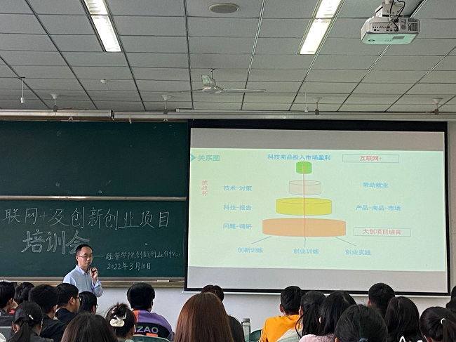 本网讯(文/敬雨霏,图/谢婷婷)3月10日下午,经管学院在行知楼召开2022年“互联网+”及创新创业项目培训会,由学院副院长杨小川、罗富民以及专任老师廖蕾主讲。学院大一至大三全体学生参加了培训会。