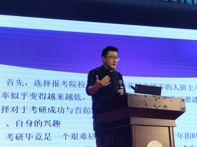 2022届考研学生李金霞、王静为学弟学妹们介绍了考研经验,她们分享了选择学校和专业的经验,分享了考研的心得体会,并为学弟学妹提供了可供参考借鉴的学习方法。冯晓兵对旅游管理类专业学生考研进行了指导,从考研学校的选择和考研复习计划的制定进行了讲解。乔恒忠为同学们分析了近期的考研形势,对自己的考研经历和经验进行了分享交流,对选择考研的学子们送上了真切祝福。