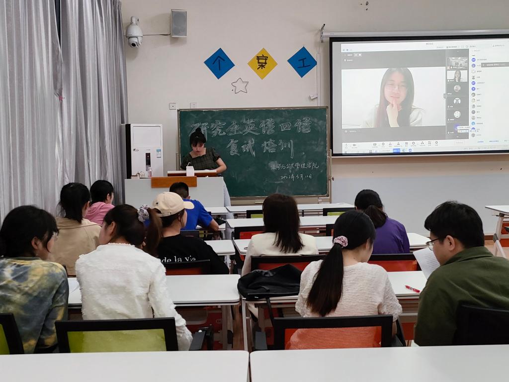 本网讯(文、图/梁慧)为了给学院2022届考研学子提供精准指导、打磨英语口语复试技巧,2022年3月13日,法管学院在实训楼A503教室组织开展了2022届考研英语口语复试培训会,会议特邀北京大学全职博士后李曼师姐主讲。学院30余名同学通过线上线下两种方式共同参与。