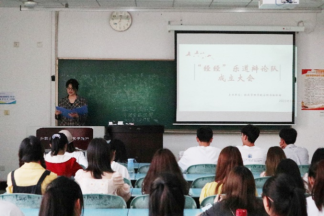 本网讯(文/何盼、图/李鑫源)3月17日下午,经管学院在行知楼教室举办了“‘经经’乐道”辩论队成立大会,分团委副书记陈家栩及相关工作人员,辩论队成员参加本次大会。