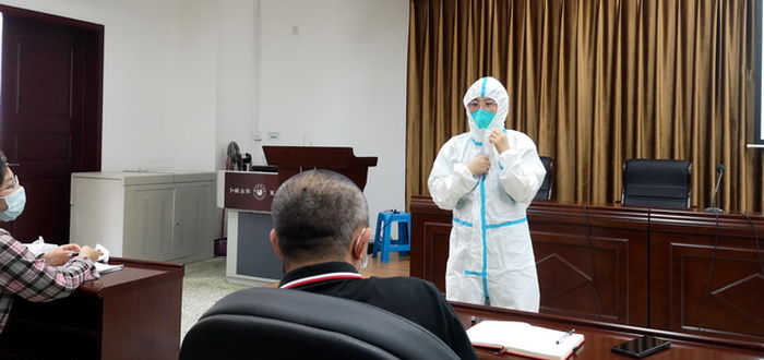 刘潇老师分别对病源流调溯源工作的重要性、4小时核心信息采集的主要内容、做好防护知识的重要性及相关要求进行了详细讲解。现场演示了防护服的穿戴步骤,重点强调了操作中容易疏忽或者错误的细节。同时,还根据学校的实际情况,分析解答了老师们在防疫工作中遇到的疑惑和问题。
