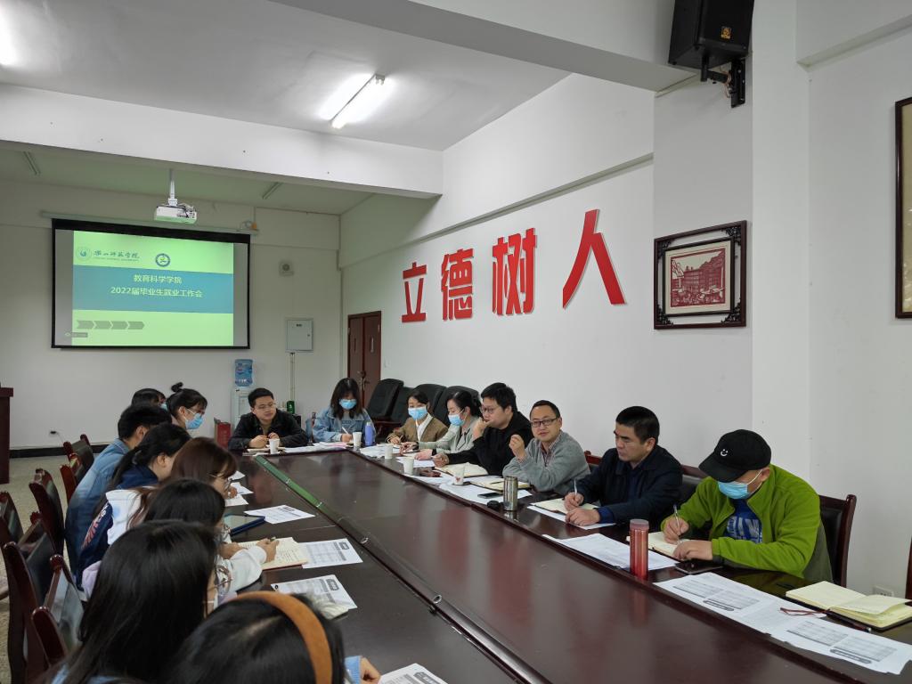 本网讯(文/杨蕾、图/李过)3月21日下午四点,为了让2022届毕业生明晰当前严峻的就业形势,推进就业工作稳步发展,教育科学学院于学院会议室举办了2022届毕业生就业工作会。出席会议的有教育科学学院党委书记罗立顺、副书记何晓军、全体辅导员老师以及2022届学生党员和学生干部代表。会议还邀请到学工部副部长南麒和就业处廖盛荣老师莅临指导。会议由罗立顺主持。
