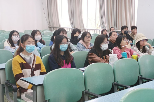 会议伊始,门涛院长对分享会及分享人周子维作了介绍,紧接着周子维就考研资料获取、考研院校专业选择、读研生活分享、就业信息获取等四个方面进行分享。她表示当下考研形势的严峻,希望学弟学妹们要严谨择校、放平心态、努力拼搏,要“知命不惧,日日自新”,在开花前奋力耕耘,在结果时不骄不躁,哪怕失败亦不可怕。另外她也表示无论何时都要坚持学习,要珍惜时间提升自己的专业技能和综合能力,无悔青春。