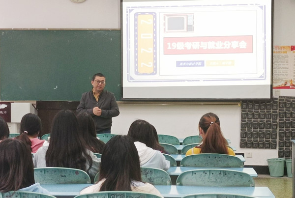 本网讯(文图/钟蕾)为抓好2019级数媒专业考研及就业工作,积极推动工作落到实处,2022年3月24日下午在行知楼113教室,美术与设计学院邀请优秀校友重庆大学研究生周子维为2019级数媒专业的同学开展考研暨就业分享会。