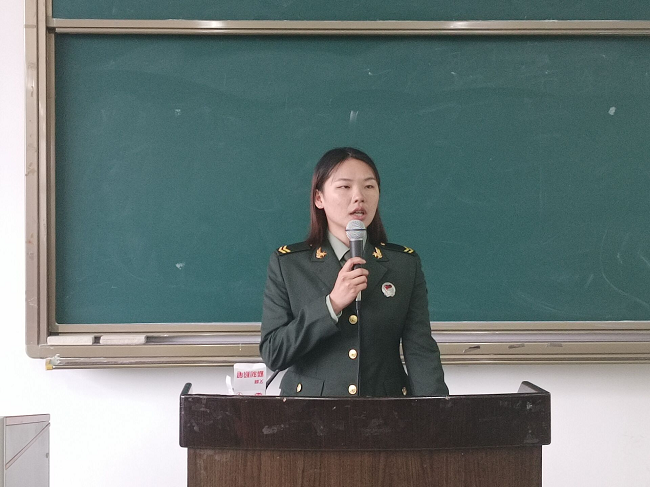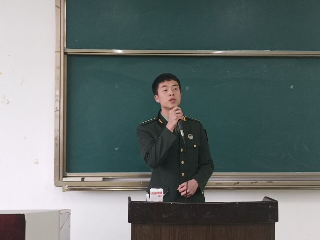 包天骏讲述了2022年应征入伍的政策,随后为与会人员讲述关于征兵的具体注意事项。最后,由三位应征入伍退役的学生进行了自己军营生活分享,讲述了自己在军营里经历过记忆最深刻的事,比如攀登训练、海训等,其中,陈帅同学更是参与过中印对峙,他说:“刚集合时还不知道发生了什么,但当看见有战友被送回来时,他才意识到有事发生,可当命令下达身渡冰河时,我们没有一丝犹豫,顶着没过半身的河水往前走。”他的一番讲述,切实地让同学们对军旅生活有了更深的了解。