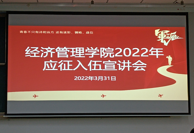 本网讯(文/杨镇鸿,图/唐雅芝)3月31日下午,经管学院于行知楼教室开展2022应征入伍政策宣讲会,由经管学院学生科科长包天骏主持,经管学院大一至大三全体男生参加了宣讲会。