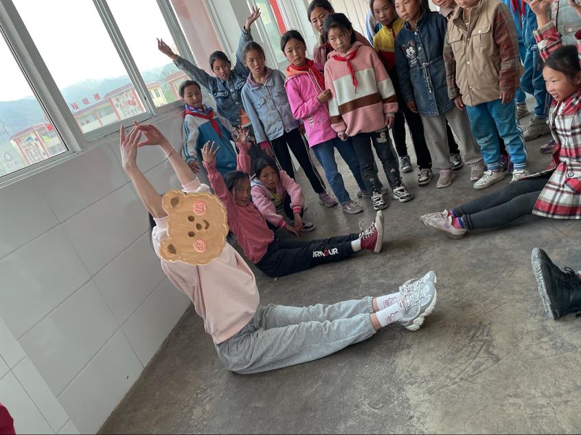 我们一行来支教的文老师,还参加了乡村少年宫活动的开办,接手了一个舞蹈兴趣班的兼职工作,为孩子们的兴趣开发和全面发展献出了自己的努力。其实,来到这里我才清楚地明白,山区孩子比城里的孩子缺乏得更多的不是主科的学习,而是多元学习的机会。城里的孩子能接触更多的课外兴趣班,家长也有时间有精力去重视培养孩子的兴趣特长,而山区的孩子所在的环境没有这样的条件,他们可能对美术、音乐、舞蹈等感兴趣,但没有机会进行系统的学习,我们来到这里,也相当于是给他们多了一些多元学习的机会。