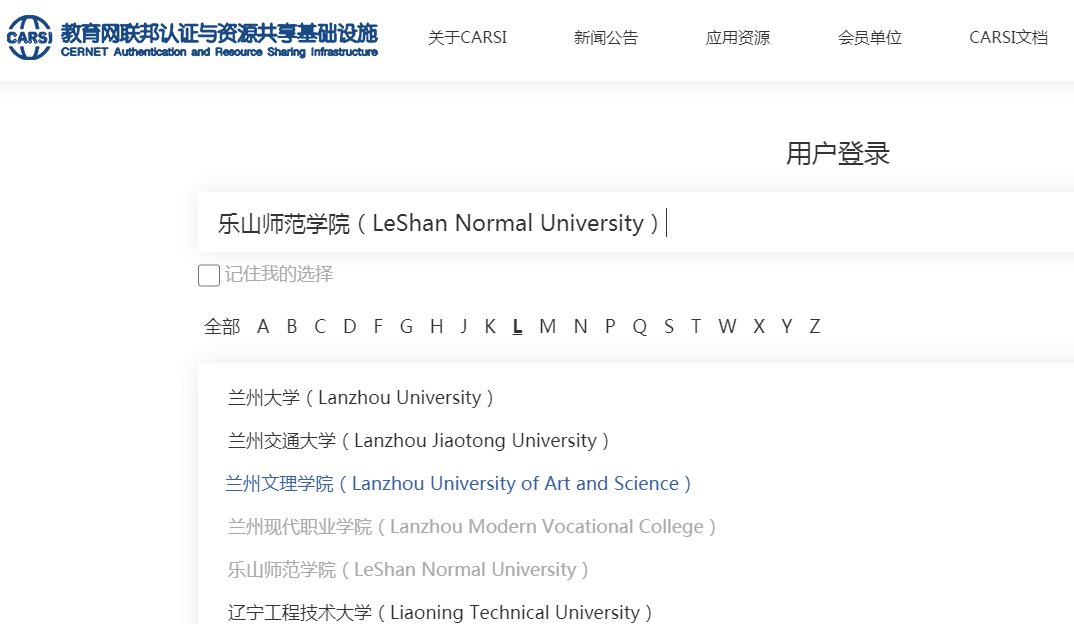 CERNET联邦认证与资源共享基础设施CARSI-用户登录https://ds.carsi.edu.cn/login/index.html