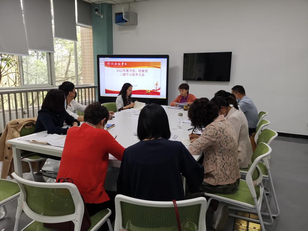 本网讯(文/易英霞、图/舒宇)4月13日下午,在直属党支部书记张静的主持下,图书馆、档案馆在数字阅读与新技术体验空间108-4研讨室先后召开二级中心组学习会和直属党支部支委(扩大)会,就坚持不懈推进党的建设和全面从严治党向基层纵深推进,开展了深入的学习、研讨,细化责任分解、落实工作推进。