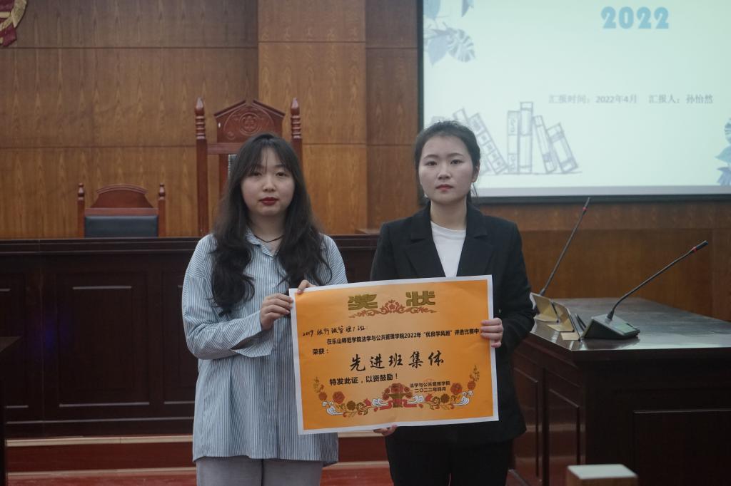 活动最后,主持人宣布了本次优良学风班打擂比赛的结果,并对获奖班级进行了颁奖。19级行政管理一班荣获“先进班集体”荣誉称号,20级行政管理班、19级法学班、20级社会工作二班荣获“优良学风班”荣誉称号。至此,法管学院2022年度优良学风班打擂活动圆满结束。