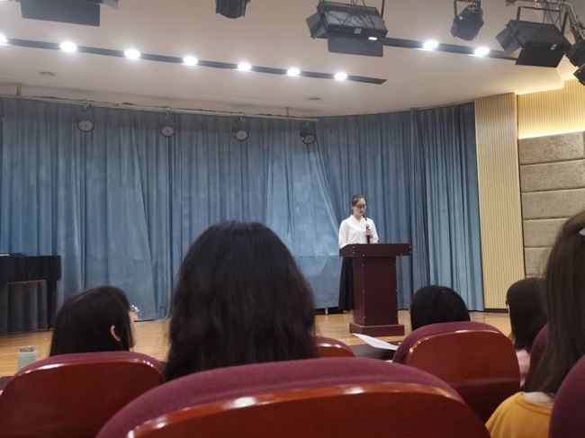 本网讯(文、图/刘星言)4月14日,马克思主义学院“乐师红帆”理论宣讲团在音乐学院邦泰音乐厅开展红色音乐党史宣讲活动,宣讲团部分成员参加。本次宣讲活动由2018级思想政治教育一班苟胜男同学主讲。