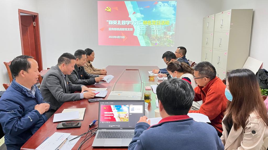 本网讯(文图/梁晨)4月15日,宣传部统战部支部在弘毅楼406开展特色党日活动,邀请2019级学前教育专业学生吉极么英扎同学和大家分享她的成长经历,学习她在生活的磨难中始终保持阳光的心态,坚守初心、努力奋斗,自强不息、坚韧不拔的优秀精神和品质。