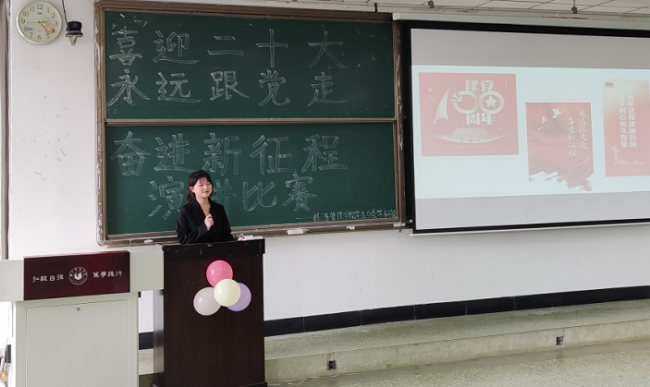 参赛选手们严格遵守比赛规则,在赛前做好充足的准备,紧扣“喜迎二十大,永远跟党走,奋进新征程”的演讲主题,结合PPT与视频进行了精彩的演讲。演讲中,参赛选手讲述了中国共产党领导全国各族人民进行改革的艰苦历程,重温了那段感人至深的峥嵘岁月。淋漓尽致地表达出他们作为新时代青年对党的初心与崇高的敬意。