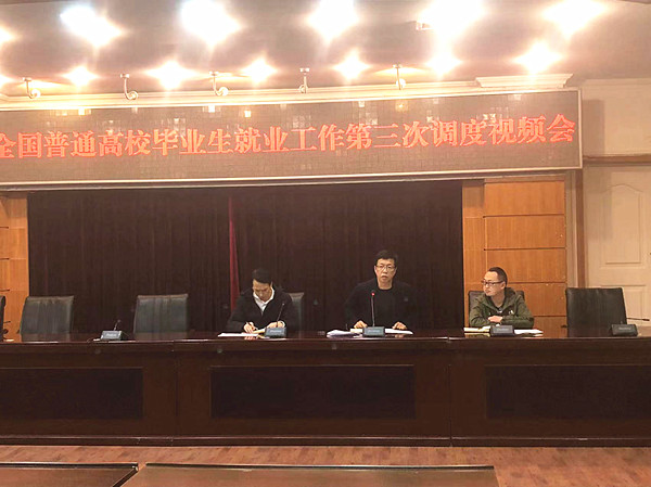 本网讯(文、图/朱以荣)4月19日下午,2022届全国普通高校毕业生就业工作第三次调度视频会议在北京召开,教育部高校学生司副司长吴爱华、教育部学生服务与素质发展中心副主任宁小华出席会议并讲话,会议由教育部高校学生司就业处处长唐小平主持。学校副校长李朝晖,学工部部长黄显刚,副部长南麒及各二级学院党委副书记,毕业班辅导员参加了此次视频会议。