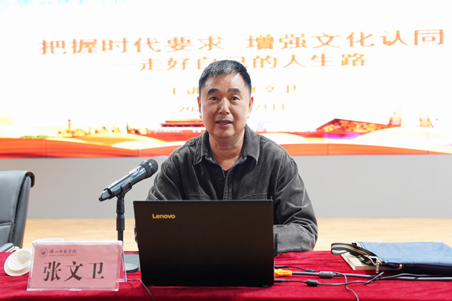 张文卫以“把握时代要求"为主题,结合国际国内形势,阐释了当下所处的历史方位与时代坐标,以“增强文化认同”为主线,强调了要深刻领会中华民族优秀传统文化以及党史中蕴含的文化内涵,探讨了大学精神与大学校训在群体文化构建与认同中的重要作用,并结合自身的人生感悟分享了如何“走好自己的人生路”,提出了“做人五要”原则和“五个温馨提示”,并以“慎微、慎初、慎独、慎交、慎好”十个字与大家共勉。