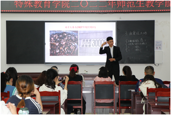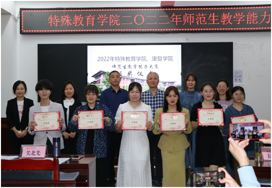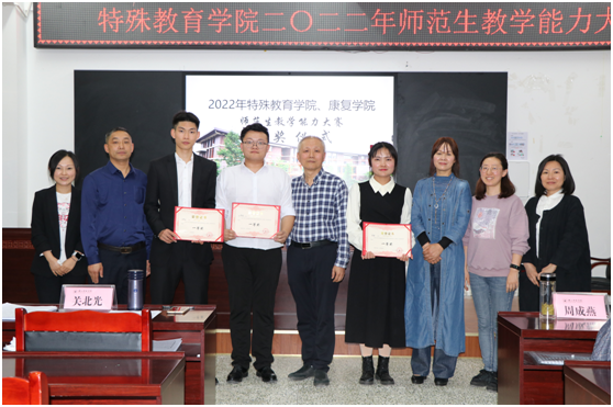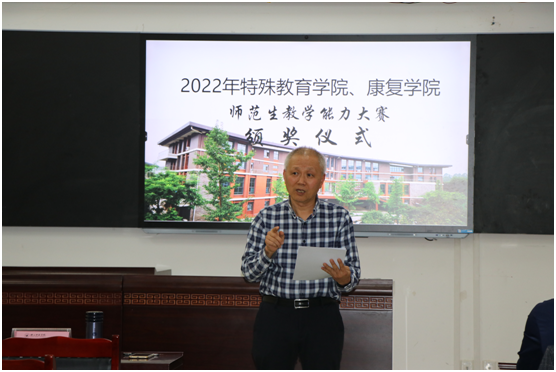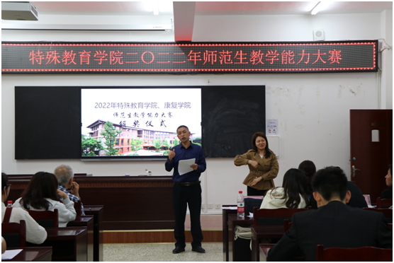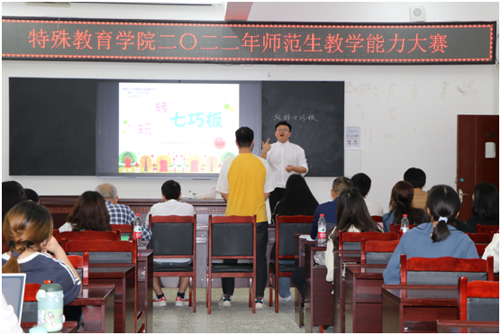 本网讯(文图/伍明菊)为以赛促教,以教助学,4月21日下午,特殊教育学院于特教大楼A栋406教室举行了2022年师范生教学能力大赛。此次比赛邀请到了乐山特校副校长周成燕、教师黄燕、朱彬,以及乐山师范学院学科教学论教研室主任关北光教授、数理学院数学教学法教师罗天琪副教授担任评委,比赛由特殊教育学院副院长魏欣主持,学院2020级部分学生观摩了比赛。
