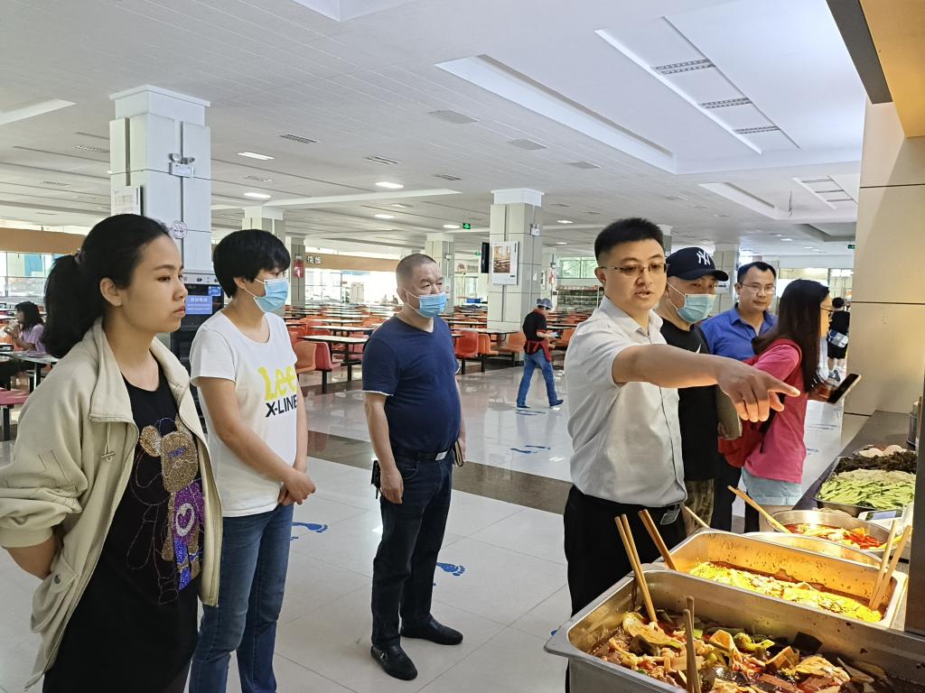 黄健一行先后深入南馨苑食堂、印刷车间、武珈山美食广场、校园快递站、嘉汇苑二楼食堂、清真餐厅、百果苑三楼食堂、校内商铺等重点场所,详细了解和认真检查了疫情防控、校园食品安全制度落实、食堂食品安全管理、物资保障进货查验、消防安全制度落实(责任制落实)、消防安全环境(消防通道、消防宣传)、消防设备配置及管理、水电气安全使用等情况,并现场提出了整改意见和具体落实要求。