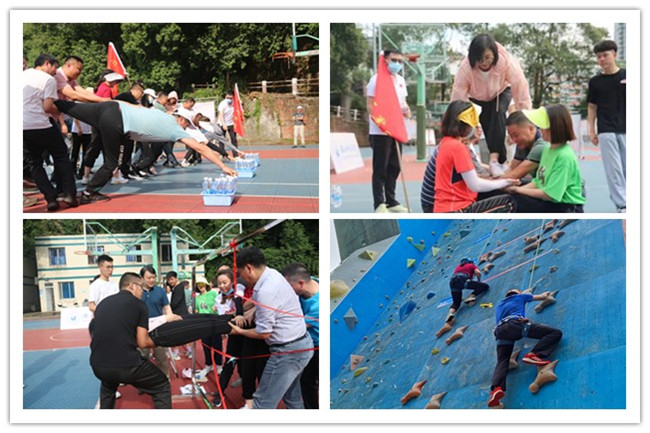 承办此次活动的体育学院党委对活动的组织给与了高度重视,党政班子齐心协力,反复研讨,历时三月建成了“喜迎二十大,奋进新征程——长征精神素质拓展党员教育培训基地”。基地依托体育学院素质拓展课程为项目载体,在活动中还原“于都出发(誓师大会)”、“穿越封锁线(穿越电网)”、“突破湘江(搭桥过河)”、“巧渡金沙江(横渡)”、“翻越夹金山(团队攀岩)”和“大会师”等长征中的重要历史节点故事。全体参训干部划分为三个组别,接受来自党组织的指示,重历“长征”征途。学员们以坚韧不拔的意志品质,通过紧密的团队协作通过“第一道封锁线”;学习革命战士以身体为桥墩,以手臂为木板搭建成一座桥梁,让所有的“战士”安全抵达河对岸;发扬革命战士勇往直前、敢于担当的品质,顺利“横渡金沙江”;通过攀岩体验了革命先辈们翻越大雪山的艰辛历程,感受革命先辈们奋勇拼搏、永不放弃的意志力;坚持不抛弃、不放弃,克服重重困难,坚持带着受伤战友走向终点、走向胜利;通过拼图重现胜利场景,实现“三军会师”,感受感恩、不忘初心的革命精神。