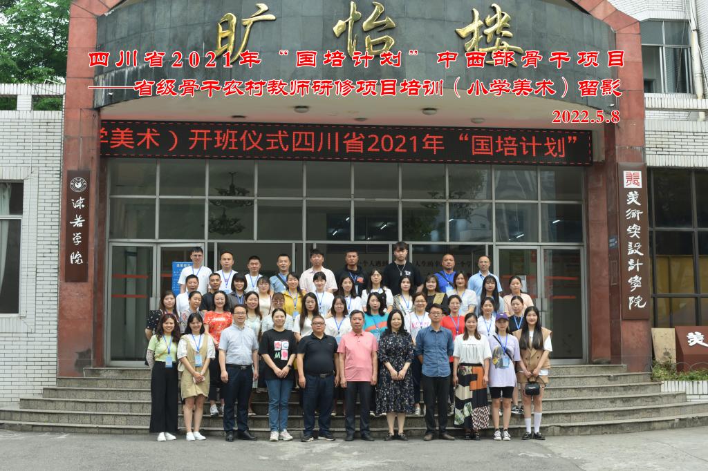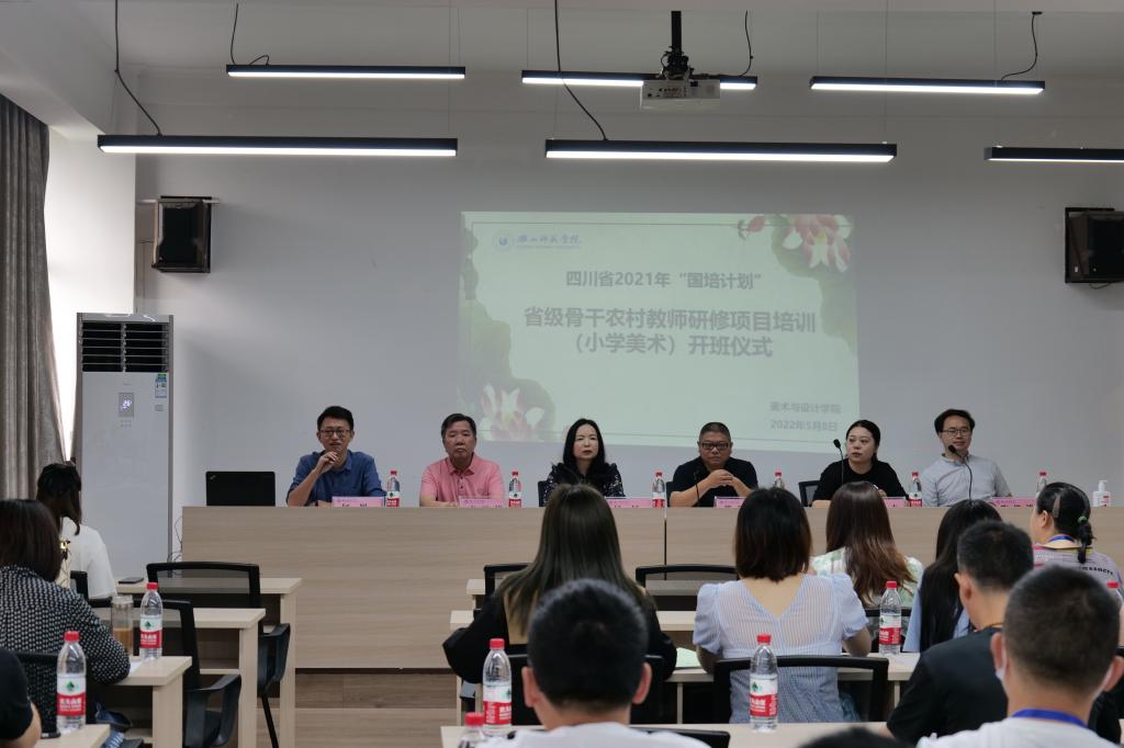 本网讯(文/符银丽、陈丽娟图/贺嘉怡)5月8日上午,四川省2021年“国培计划”省级骨干农村教师(小学美术)研修培训项目开班仪式在美术与设计学院旷怡楼705会议室举行。美术与设计学院党委书记杨虹、院长熊泽文、副院长何川、乐山市中区柏杨小学一级教师陈姝卉、教师李开能、陶继峰及全体学员参加了开班仪式。开班仪式由何川主持。