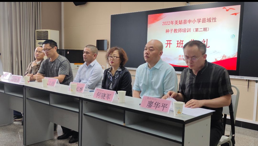 本网讯(文/黄宇、图/蒋显兰)5月9日上午,由教育科学学院承办的“2022年美姑县“一对一”精准帮扶--中小学县域性种子教师培训(第二期)”开班典礼在弘毅楼504A教室开班。学院院长兼本次培训首席专家汪红烨、党委书记罗立顺、党委副书记何晓军、副院长唐前军和本次培训首席执行专家廖华平及来自四川省凉山彝族自治州美姑县的36名学员参加了此次开班典礼。典礼由副院长徐世鼎主持。