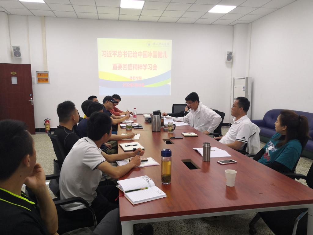 本网讯(文/熊仪、图/杜小敏)5月9日,体育学院组织全体二级中心组成员在体育学院305会议室学习习近平总书记给中国冰雪健儿的回信精神。学院党委副书记(主持工作)钟大勇进行辅导学习。