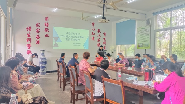 本网讯(文、图/易秀琴)5月12日下午,生命科学学院党委在学院会议室召开专题学习会议,专题学习习近平总书记在中国人民大学考察时的重要讲话精神,会议由党委副书记杨益主持,全体教职工参加会议。