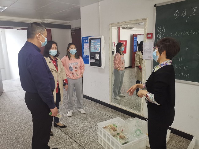 在此期间,我院党政领导班子时刻关注被隔离同学的生活学习状况,5月16日中午,院长郑文杰、院党委书记李涛、副书记钟永淑他们带头开展服务,为隔离的同学送去饭菜,确保同学们的生活得到保障。
