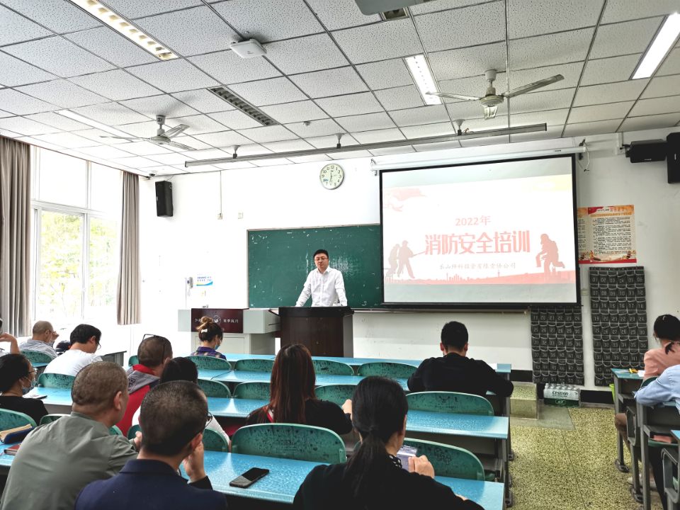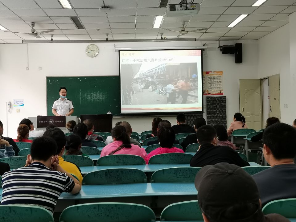 本网讯(文、图/黄婷婷)为进一步增强公司员工及校内合作商家的消防安全意识,提高消防应急处置救援能力,5月19日下午,师科公司邀请乐山市兴云消防宣传中心李佳青教官对师科(源)公司、陶然居餐饮公司、红旗超市、雅风阁餐饮公司及校内合作商家共计60名员工在行知楼108教室进行消防安全知识培训。会议由师科公司总经理黄健主持。